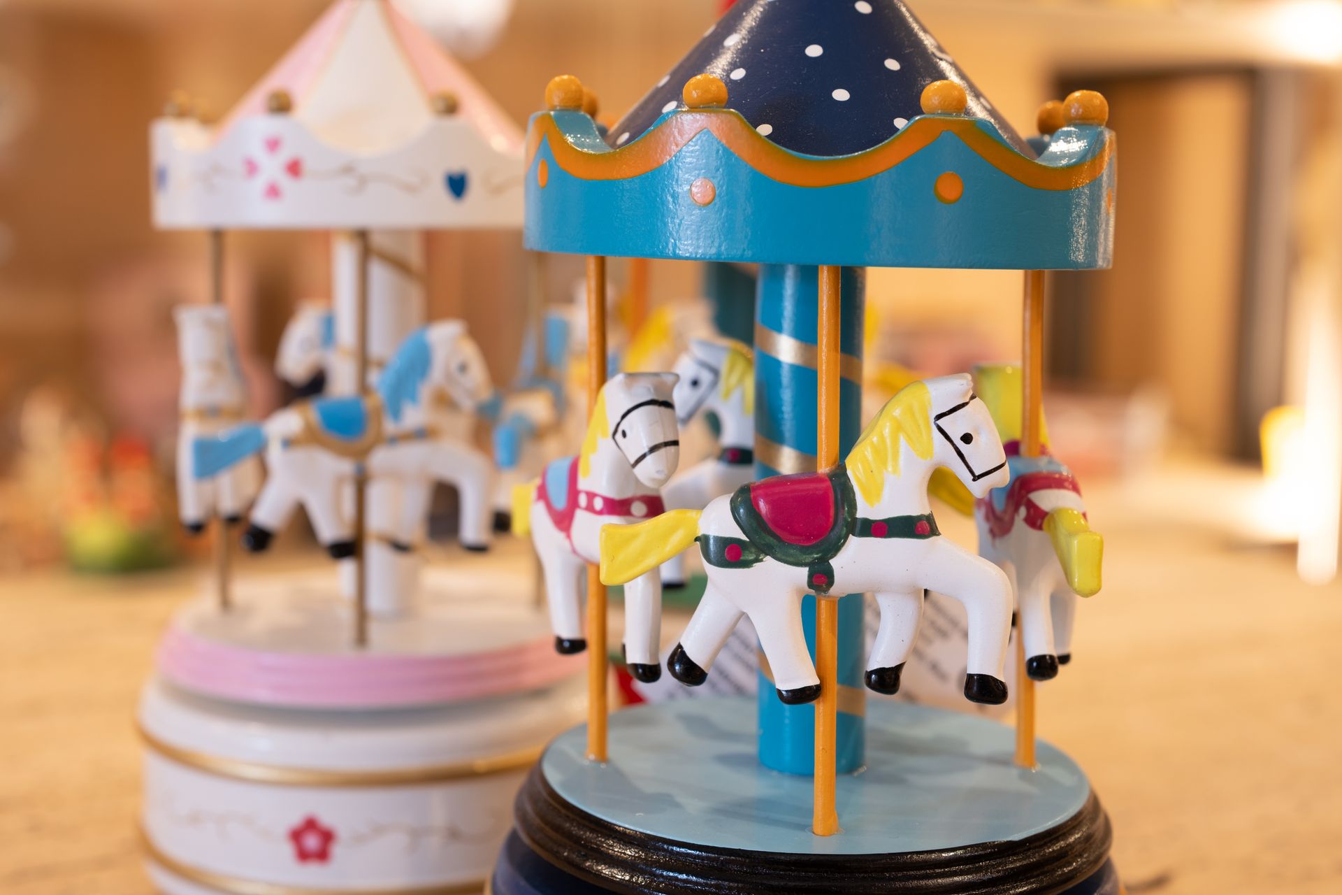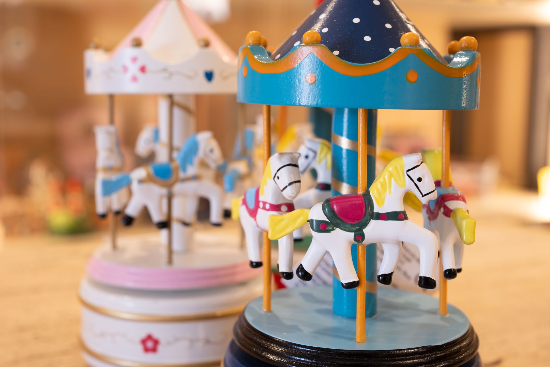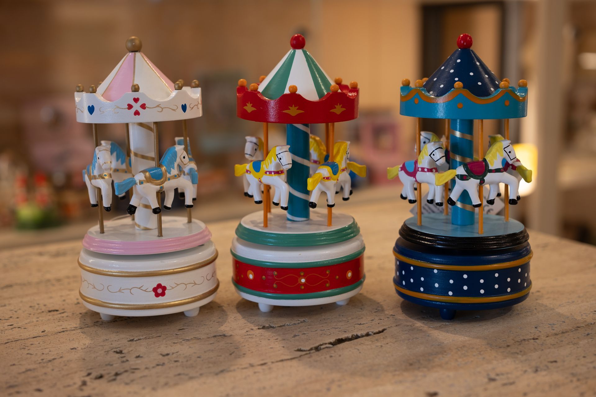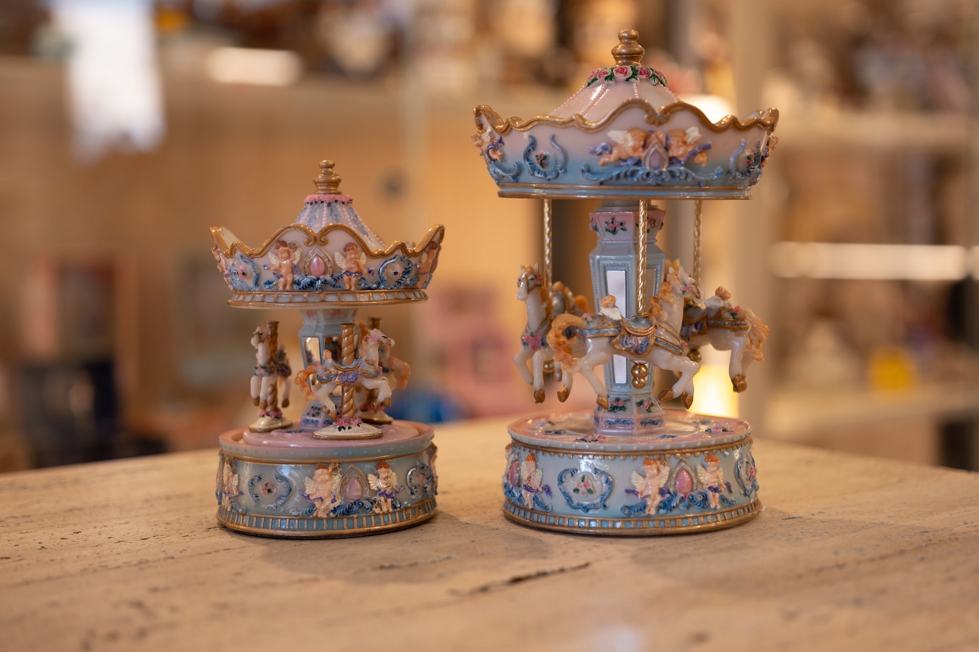 The store offers a huge assortment of musical carousels and music boxes ranging from retro-inspired 1950s wooden ones to magical Boule de Neige (glass bubbles), from timeless horse carousels to Christmas music boxes and ceramic ones perfect for a christening gift.